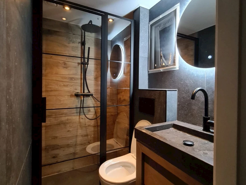 Er wordt steeds meer waarde gehecht aan comfort, sfeer en luxe elementen in een badkamer. Om een praktische, sfeervolle complete badkamer in een kleine ruimte creëren is een extra grote uitdaging. Wij vinden dat de inrichting van deze badkamer in een chalet ontzettend goed is gelukt. Ondanks alle beperkingen is er een sfeervolle en luxe badkamer in samenwerking met Sani4All gecreëerd.